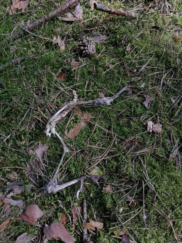 Während unserer Suche nach geeigneten Stämmen stießen wir auf etwas sehr Spannendes. Wir haben tatsächlich Teile eines Vogelskeletts gefunden. Es war so faszinierend jedes einzelne Detail sehen und bestaunen zu können.