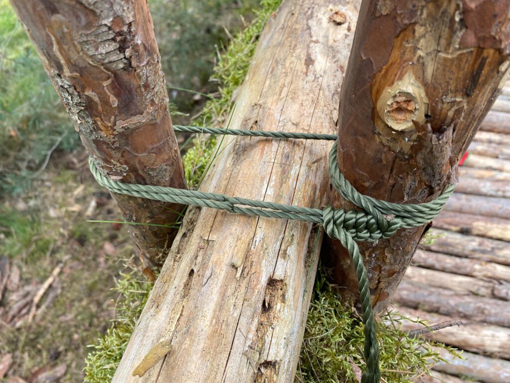 Zwar setzen wir auf natürliche Materialien, jedoch war uns das feste Paracord der Bundeswehr sehr vom Nutzen. Das Hanfseil war die natürlichere Variante, konnte uns jedoch im festen Spannen leider nicht weiterhelfen. Trotzdem war es uns für Zwischenschritte sehr nützlich.