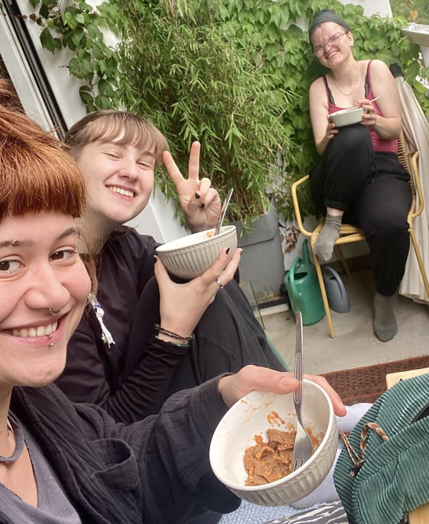 Zu Beginn stärkten wir uns mit PastaPesto a la Sverige. Dabei feilten wir noch etwas an dem Songtext und dachten uns einen süßen Einstieg zum Song aus.