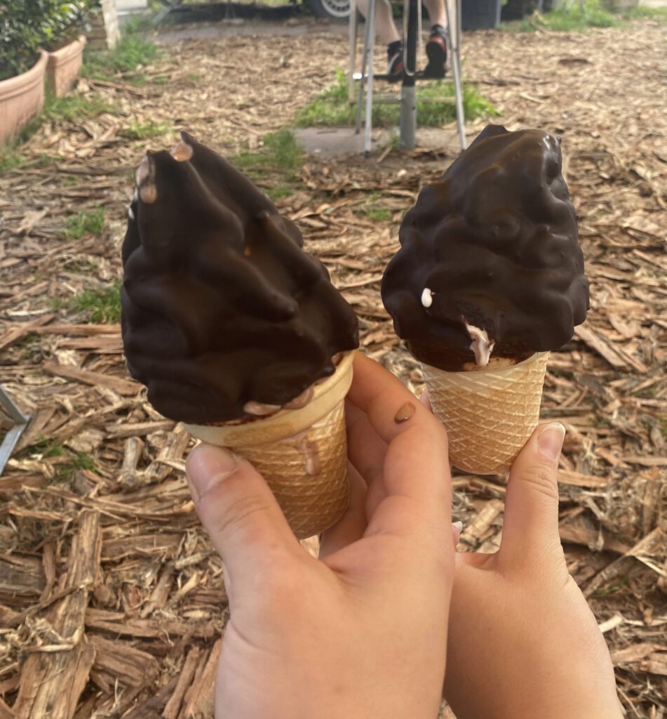 Unseren letzten Arbeitstag mussten wir unbedingt noch gebührend feiern und sind zu Beginn an unserem Softeisladen des Vertrauens in Caputh vorbeigefahren. Es war ein regelrechtes Wettrennen gegen das Eis. Als ob es uns gesagt hätte: „Beeilt euch, ihr müsst heute einiges schaffen!“