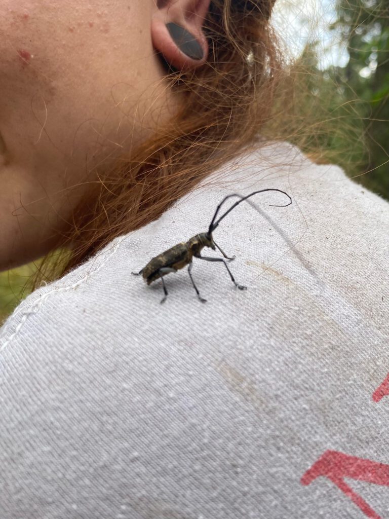 Zu unserem Pech schien der Wald heute von Spinnennetzen und Mücken regelrecht überfallen zu sein. Trotz unserer Bemühungen, uns zu schützen, wurden wir ordentlich zerstochen und mussten uns immer wieder gegen die lästigen Plagegeister zur Wehr setzen. Aber wir ließen uns nicht entmutigen und arbeiteten konzentriert weiter.