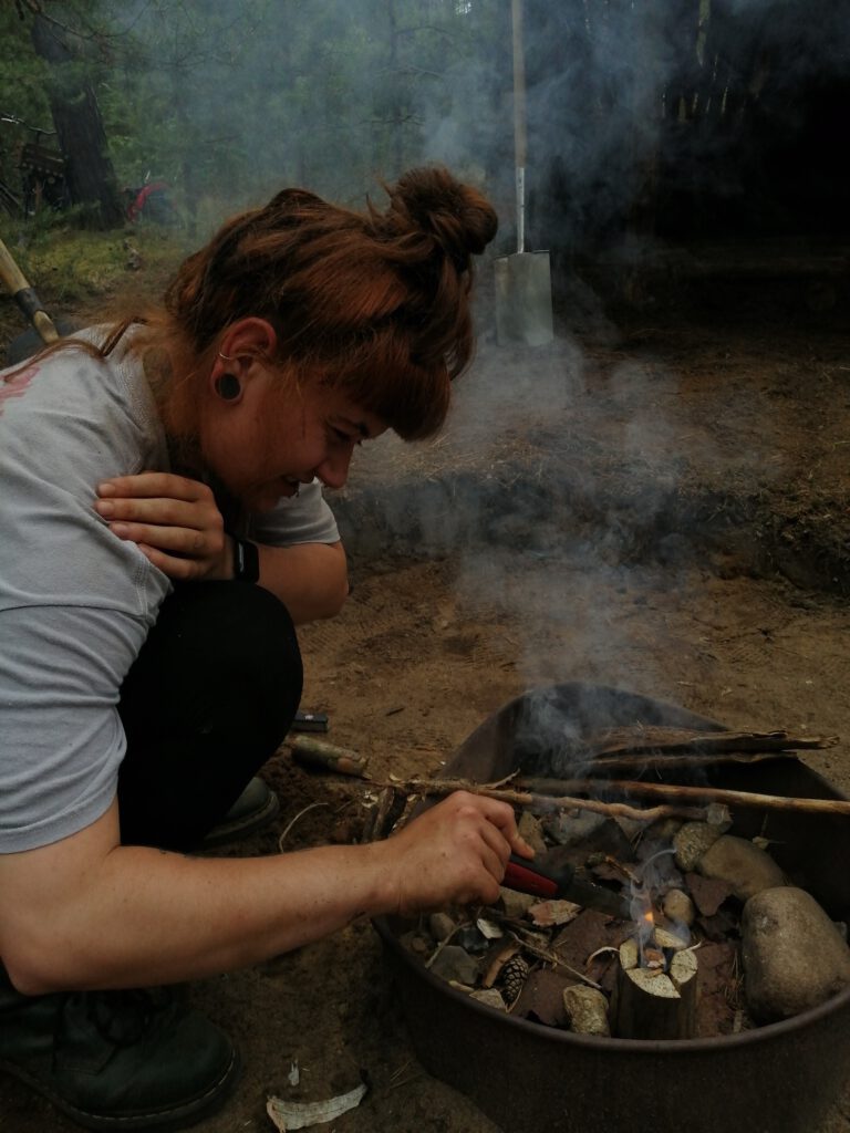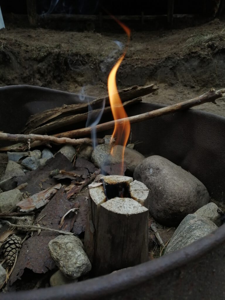 Wir konnten es uns nicht verkneifen und mussten ein kleines Schwedenfeuer zur Einweihung entzünden. Es hat zwar nicht so gut geklappt, trotzdem brannte es und wir erfreuten uns an der kleinen Flamme und dem tollen Geruch, den wir beide so sehr vermisst hatten!